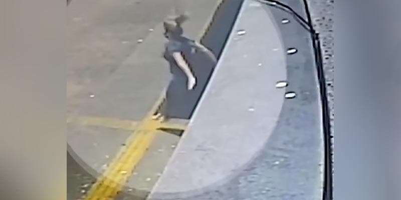 En el video se puede observar a la mujer cuando cae al suelo desde el segundo piso y se queda en el lugar adolorida tras saltar.