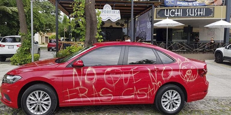 Mujer raya el auto de un hombre por infidelidad.- Una mujer le escribió un mensaje a su pareja: “no que no eras casado”, le rayó en el auto del hombre por motivos de infidelidad.