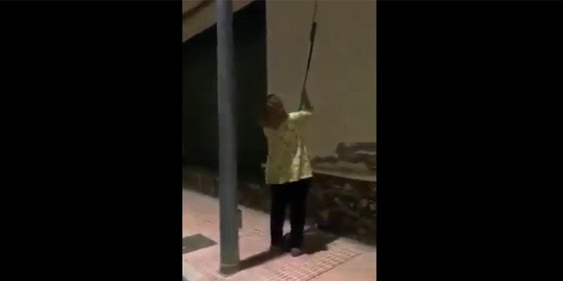 Poco o nada le debe importar a esta mujer de Daya Nueva (Alicante) que las golondrinas sean una especie protegida. Cigarrillo en la boca, destruye 50 nidos con un palo de escoba. Se lo recriminan pero sigue.