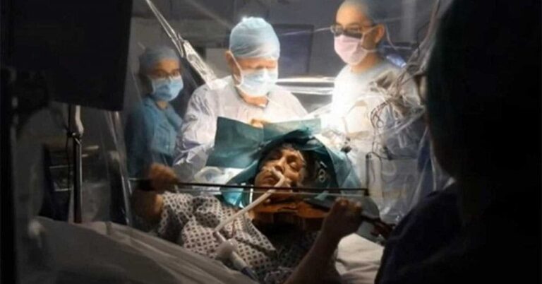 Mujer toca el violín mientras le extirpan un tumor cerebral
