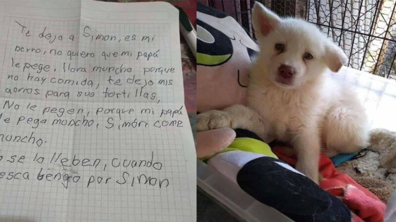 «Te dejo a Simón, es mi perro. No quiero que mi papá le pegue; llora mucho porque no hay comida. Te dejo mis ahorros para sus necesidades. No le peguen porque mi papá le pega mucho. Simón come mucho. No se lo lleven, cuando crezca, vengo por Simón», escribió el niño conmovido.