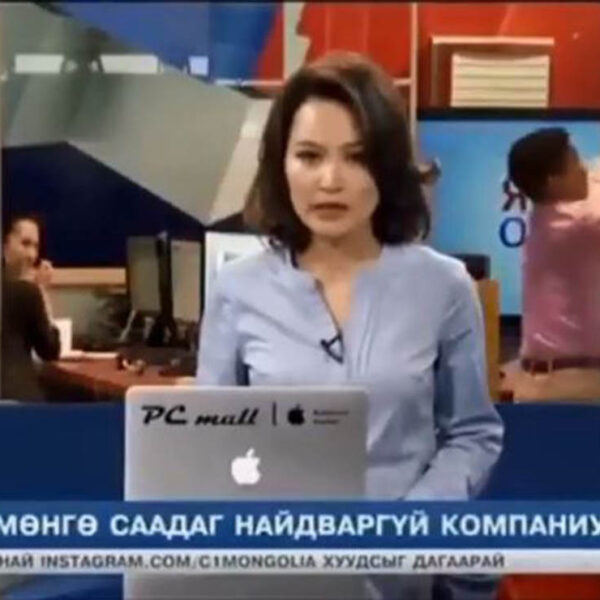 En redes sociales se hizo viral un video que ocurrió en un noticiero de Mongolia, en el cual se observa una pelea mientras la presentadora realizaba la transmisión.