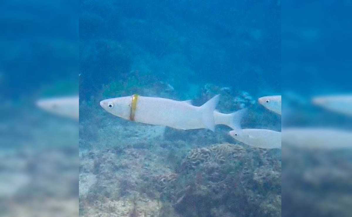 El pez, tenía la sortija ajustada en su cuerpo, ante la sorpresa de la buceadora, captó varias imágenes que después compartió en redes sociales, las cuales se viralizan.