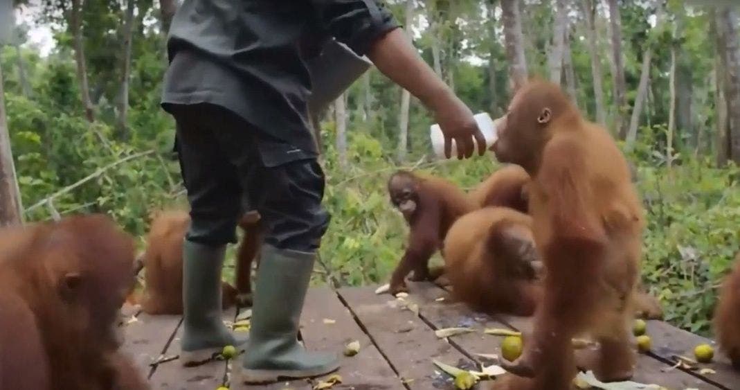 El vídeo cómico del simio fue compartido en redes sociales y se ha vuelto viral causando sensación y sorpresa por el berrinche que hizo el orangután para obtener su leche.