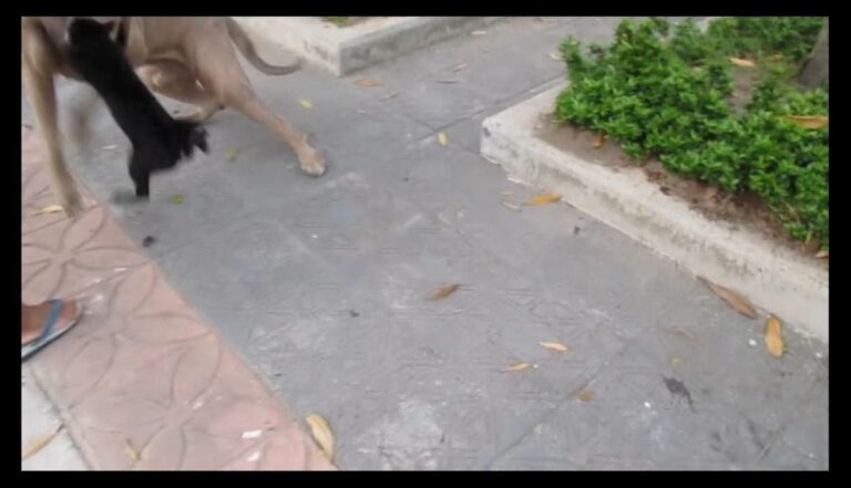En el vídeo se observa como el felino hizo un movimiento veloz para dejar como en el box en “knockout” al canino.