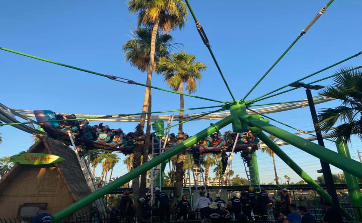 Estados Unidos. – En un parque de atracciones en Phoenix, Arizona, Estados Unidos, un grupo de 22 personas quedaron atrapados en una montaña rusa a 6 metros de altura.