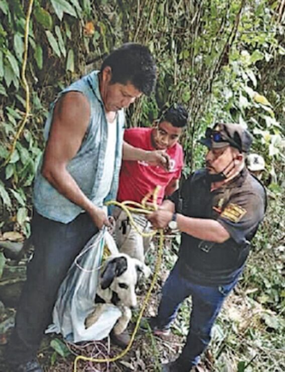 Para poder sacarlo, solicitaron el apoyo de funcionarios de la policía municipal, quienes bajaron con un equipo especial de cuerdas, hasta tener al canino en sus manos.