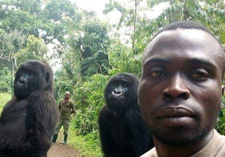 Circula por redes sociales una selfie tomada por un guardia forestal del Parque Nacional de Virunga, en la República Democrática del Congo, hogar de la mayor población de gorilas de montaña. La fotografía ha dado la vuelta al mundo pues, en ella aparecen dos gorilas acomodados de una manera muy particular.