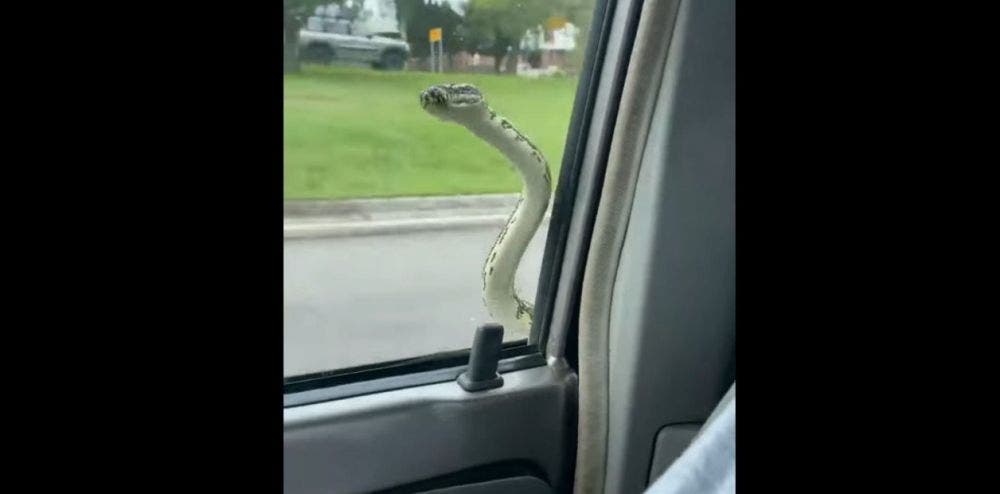 Posteriormente, el hombre detuvo el vehículo e intentó mover la puerta para que la serpiente se fuera, pero no lo logró, fue hasta que un vecino del lugar acudió al rescate.