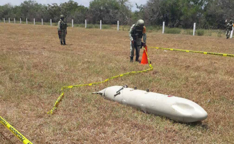 En la entrada al municipio de Estación Manuel, al sur de Tamaulipas identificaron un tanque de combustible para avión militar, el cual cayó del cielo y movilizó a las autoridades.