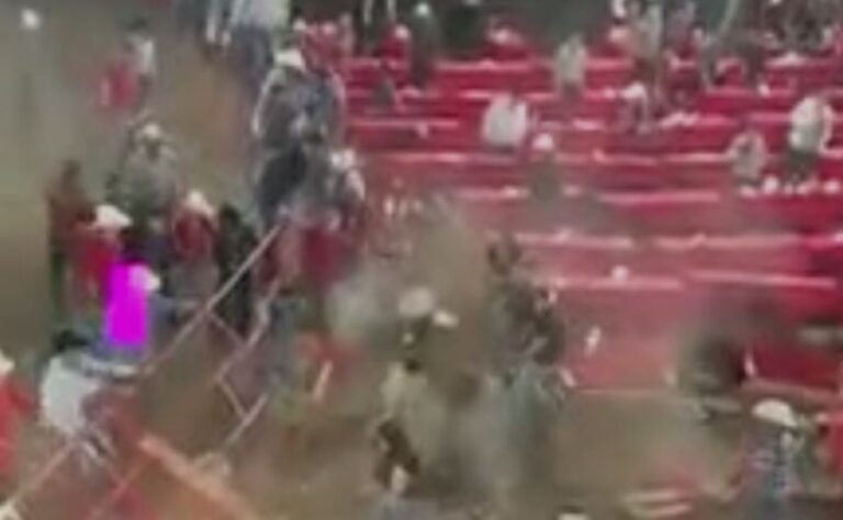 Michoacán.– Durante un jaripeo clandestino en el municipio de Puruándiro, Michoacán, un toro lesionó a al menos 10 personas luego de que derribó una cerca tras la que se encontraban los asistentes.