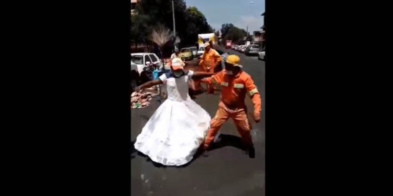 Trabajadores de limpieza encuentran vestido de XV años y se vuelven viral.- Trabajadores de limpieza de la Ciudad de México se volvieron viral en las redes sociales por un video en el que se divierten con un vestido de XV años que encontraron en la basura.