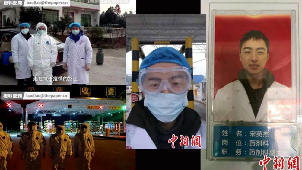 Song Yingjie (al centro) el médico que murió de agotamiento trabajando largas jornadas contra el coronavirus