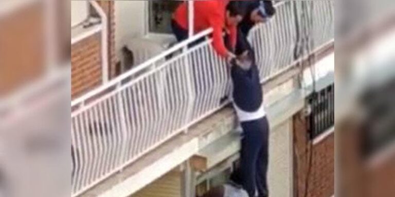 Video: Abuelito se queda colgando de balcón y lo rescatan.- Un hombre de la tercera edad que estaba asomándose por el balcón de su casa mientras se encontraba por confinamiento en Madrid, España, estuvo cerca de caer al vacío tras resbalar y quedar colgando del barandal.