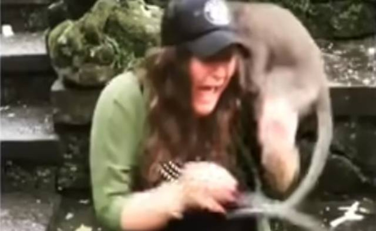 Momentos después, la madre del mono ataca a la mujer al percatarse de que su cría podría estar en peligro.