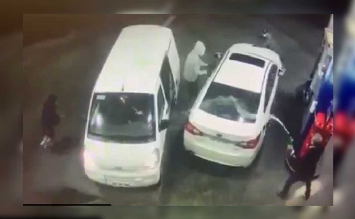 La intención de los sujetos era asaltar al automovilista que se despachaba gasolina, sin embargo, este actuó instintivamente y les comenzó a rociar combustible.