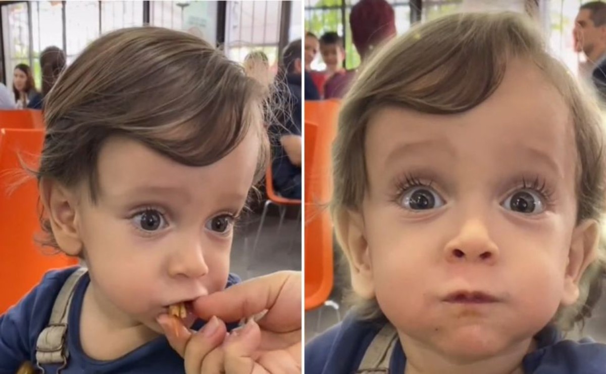 En redes sociales circulan el video y las imágenes de un bebé que tiene una épica reacción al degustar los tacos al pastor.