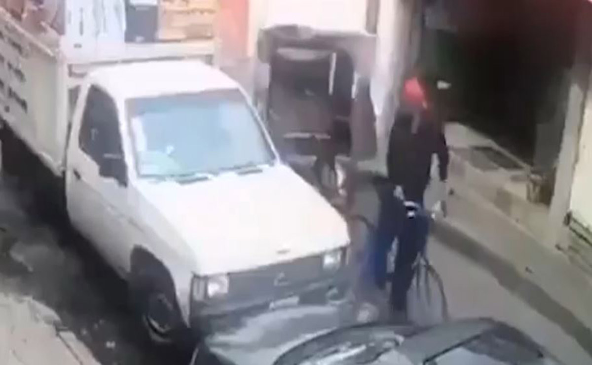 En redes sociales fue compartido el clip, donde se observa como el bicitaxista roba las pertenencias del conductor de un transporte de carga, quien se encontraba fuera bajando mercancía del vehículo.
