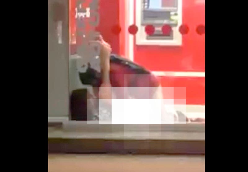 Cachan a pareja teniendo relaciones en un cajero automático en la Ciudad de México.