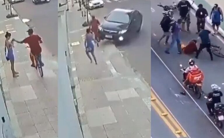 Un ciclista fue golpeado y atropellado luego de robar un celular a una mujer en las calles del municipio de Vila Velha, Brasil.