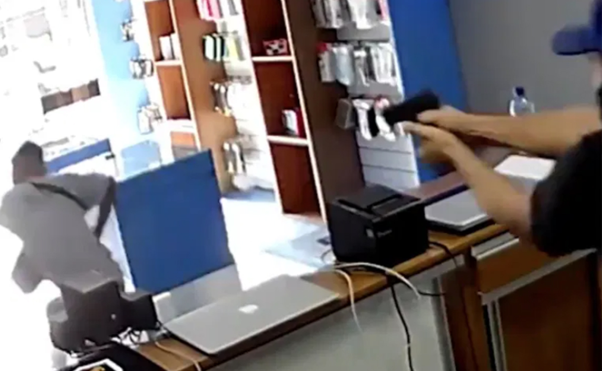 Tras un asalto, un dueño de tienda hace justicia y balea a asaltante, las imágenes quedaron registradas en las cámaras del establecimiento.