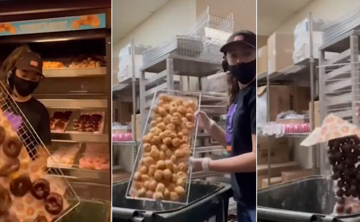 Dunkin' Donuts desecha cada día sus donuts no vendidos mientras prohíbe a sus trabajadores que los regalen. Un vídeo de esta práctica fue publicado por una exempleada de la compañía