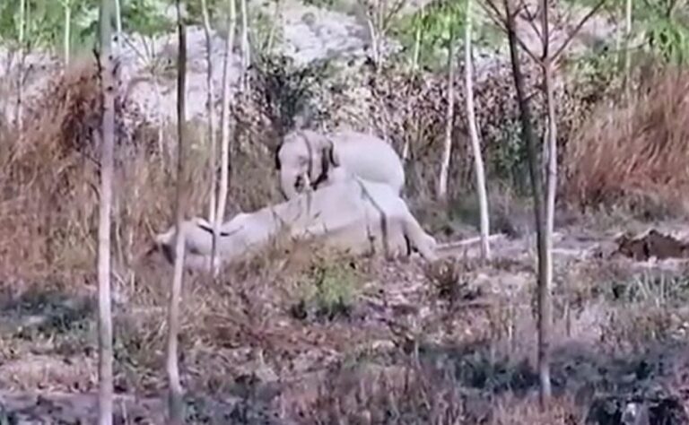 En un video que fue captado en Chanthaburi se observa como un trabajador halla al elefante inconsciente, y pide ayuda.