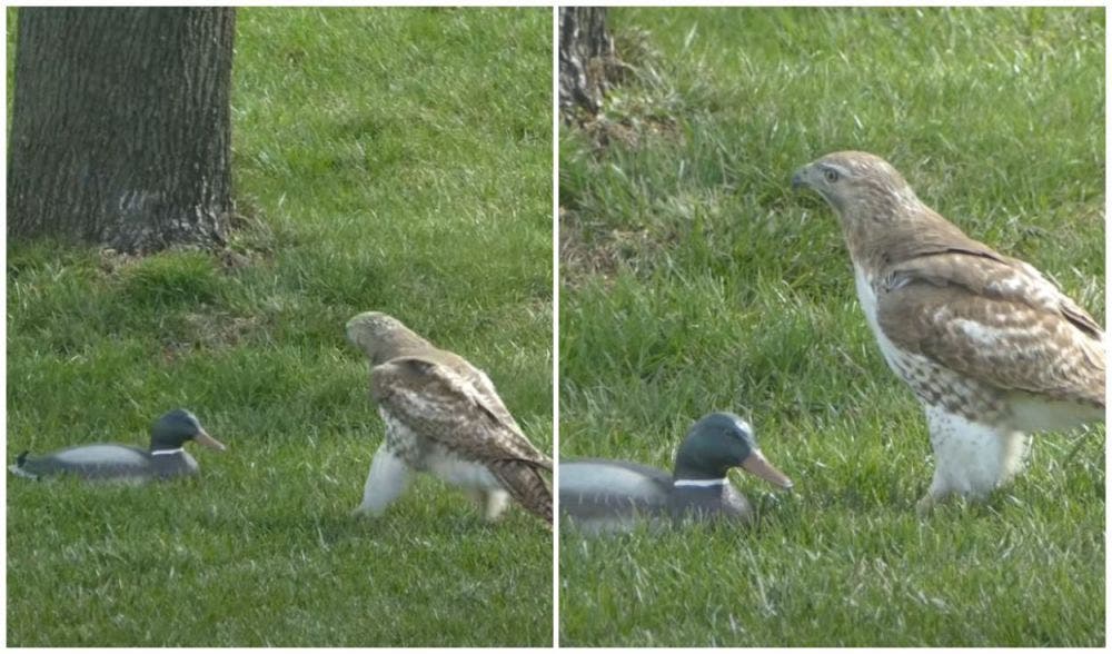 El ave puso en duda todas sus habilidades de depredador, pues en el clip se le ve tratando de cazar a un pato que yace inerte en el pasto.