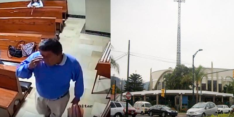 Hombre roba celular en una iglesia y se persigna antes de huir.