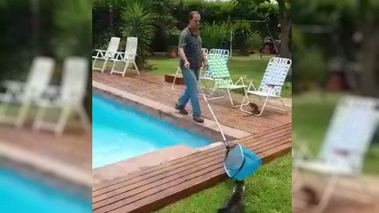Subidas las imágenes a Twitter vemos cómo el sujeto está limpiando la piscina y en el inesperado momento le sale saltando la iguana hacia él causando la risa de las redes sociales y la sensación de los usuarios que han compartido el vídeo y se ha viralizado en minutos.