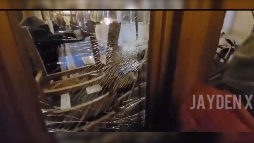 Poco antes de que la mujer fuera herida de muerte, se muestra también como partidarios de Trump rompían los cristales de puertas dobles que los oficiales habían bloqueado con muebles para evitar el acceso.