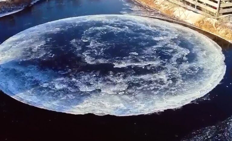 Residentes de la ciudad de Westbrook en Maine captaron un aro de hielo de 91 metros de diámetro formado en el río Presumpscot.
