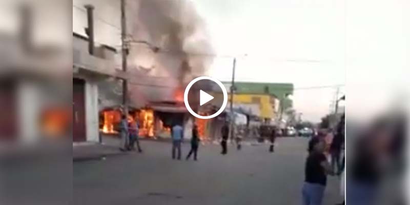 Vecinos indicaron que antes de que se incendiara el local, dos sujetos armados arrojaron artefactos que ocasionaron una explosión y provocó el incendio.