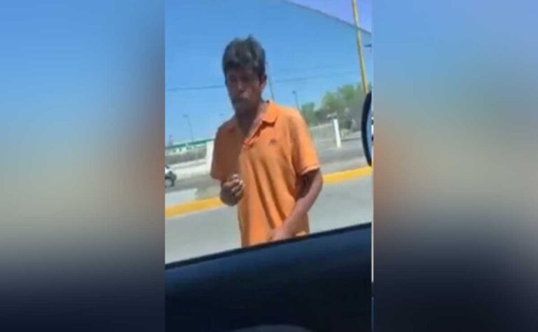 En el video se ve al indigente de 45 año de edad que le hace seña a un auto que circula por la vialidad para que éste baje su vidrio y le atienda.