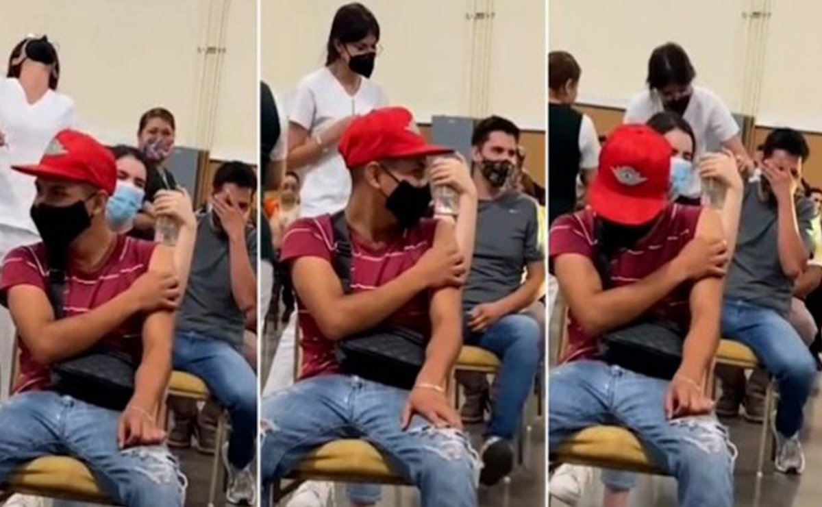 Y es que este joven, quien claramente se puede ver que padece Tripanofobia, fue grabado, pues al momento de la aplicación de la inmunización, gritó en repetidas ocasiones y una vez que la enfermera lo logró inocular, éste fue ovacionado por el resto de asistentes, quienes eran parte de los jóvenes de 18 a 29 años que acudieron al proceso de vacunación en la entidad.