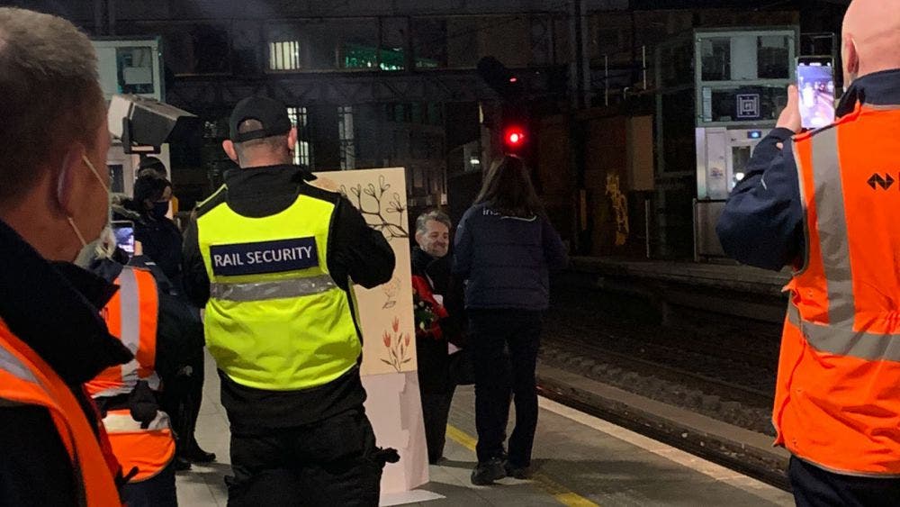 Al parecer, los encargados de la estación del tren fueron cómplices del novio al poner una romántica canción de fondo en la estación, además de que compartieron en las redes sociales el video desde el interior de la cabina.
