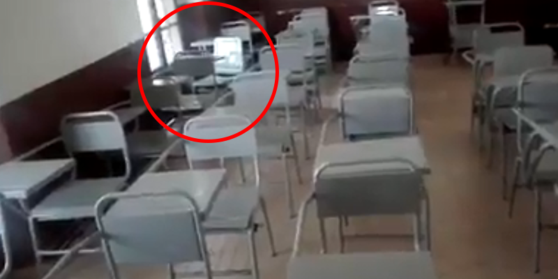 Mientras el hombre, el cual se desconoce su identidad, estaba haciendo un reporte para la escuela, una de las sillas del salón se movió de una recóndita manera.