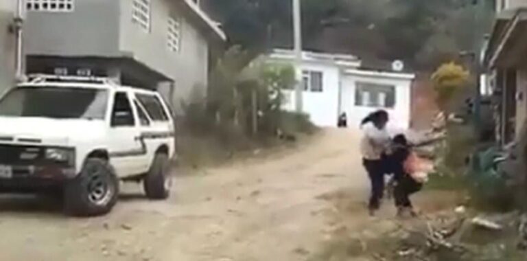 En las imágenes se aprecia a la mamá dándole con el puño al niño y también usa la rodilla para dañarlo físicamente durante 10 segundos y luego ingresan a su domicilio.