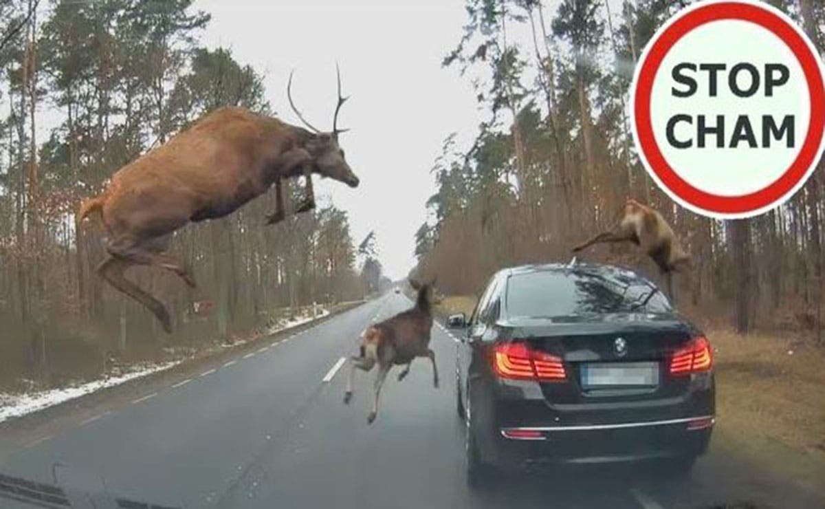 Polonia.- En video captaron un inusual incidente que se viraliza en redes sociales, resulta que un automovilista fue sorprendido por una manada de ciervos salvajes.