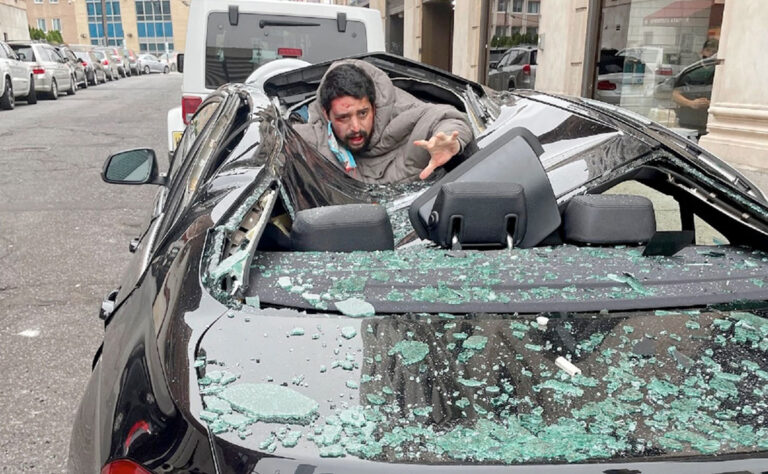 «Escuché un gran ruido y al principio no pensé que fuera una persona», dijo Smith. «La ventana trasera del coche explotó, entonces el tipo saltó y empezó a gritar. Su brazo estaba todo retorcido».