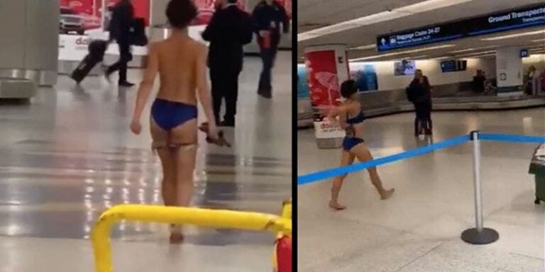 Video: Mujer camina desnuda en el aeropuerto de Miami.