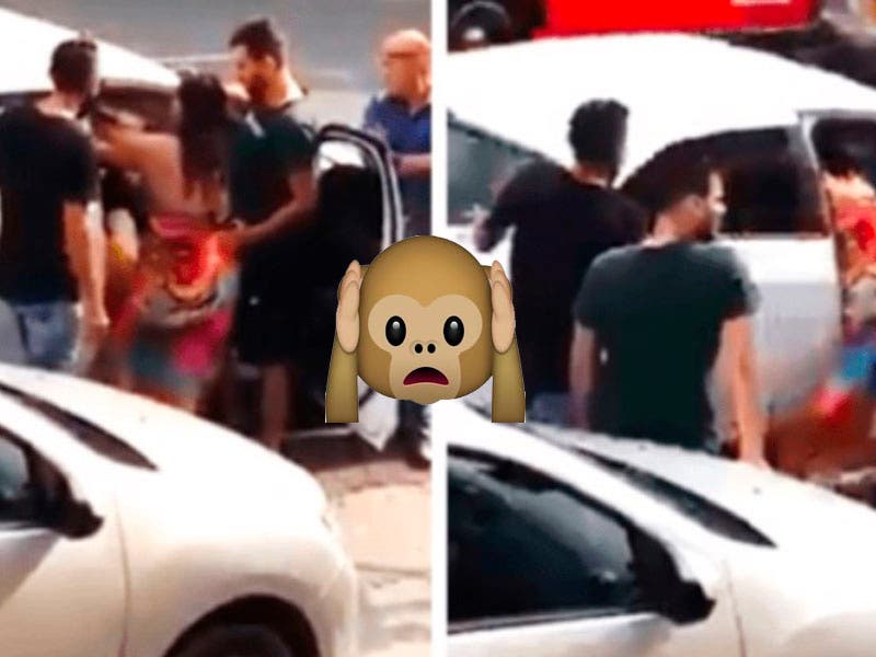 El incidente ocurrió en la calle cuando la mujer embarazada llega al lugar donde se estacionó el carro blanco, en ese momento se percata que está su marido dentro del vehículo junto a otra mujer, se acerca, abre la puerta y le grita al marido haciendo un escándalo en el sitio.