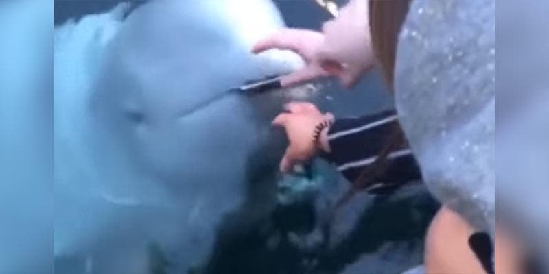 En el video se observa como el cetáceo se acerca a la superficie para regresar el celular a su dueña, quien, termino llenándolo de caricias.