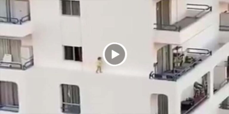 El video fue grabado por un turista que se encontraba enfrente del edificio el pasado sábado. En la grabación se ve a la niña salir de una ventana y hacer un recorrido de ida y vuelta de varios metros.