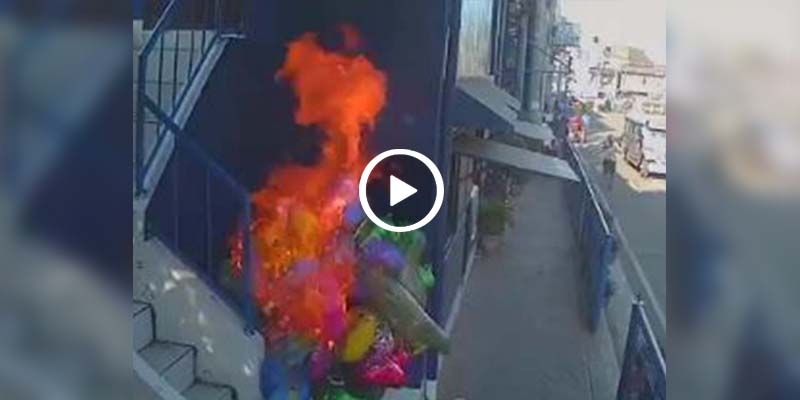 Lo sucedido fue captado por cámaras de seguridad instaladas en comercios de la zona, en las cuales se observa a los jóvenes prenderle fuego a uno de los globos, pero esto desató el incendio con el hombre debajo.