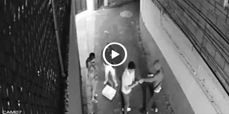 Los jóvenes estaban caminando lentamente por el callejón, sin embargo atrás de ellos se estaban acercando dos sujetos. Los hombres interceptaron a la pareja y uno de ellos los amenazó con arma de juego mientras que el otro sostenía una lámpara.