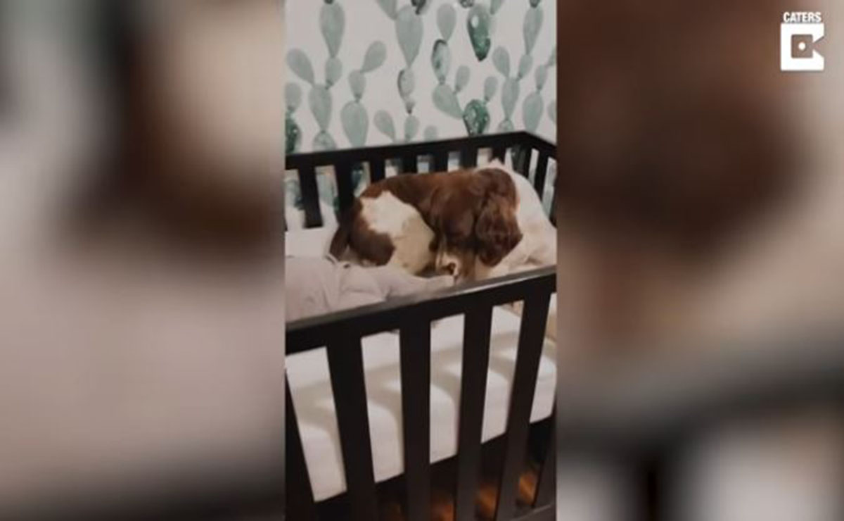La madre no solo vio a Crew llorando en su cuna, sino que observó cómo el perrito se apresuró a estar a su lado.