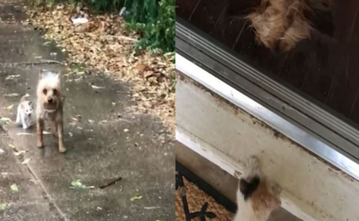 Resulta que el perrito rescató al gatito después de encontrarlo bajo la lluvia y no dudo en ayudarlo llevándolo a su hogar.