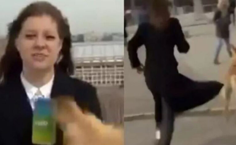 Rusia. – Cuando una reportera de televisión daba su reporte en vivo, un peculiar perro hizo de la suyas dejando sorprendidos a los espectadores.