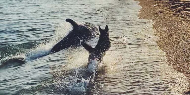 Luego de que se hiciera virales decenas de personas se asombraron al ver al delfín y al perro llevase bien.